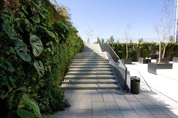 垂直绿化使人们得以构建更接近大自然的生活环境,将大自然风景引入繁杂的城市,使人造结构与自然风景完美结合,以柔和的自然曲线为设计风格,配植色彩丰富的植物,使其高低错落,交通变换,能够非常完美地将垂直绿化植物墙融合在建筑及装修设计中,并使之拥有与众不同的美感和让人赏心悦目的最终整体效果。