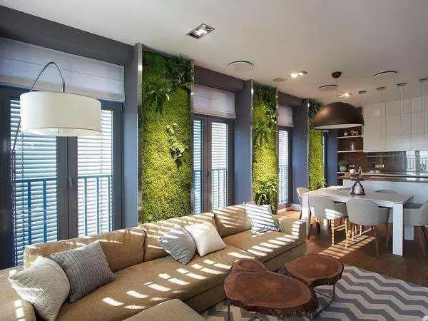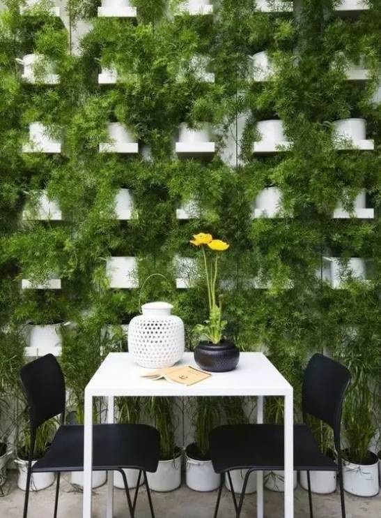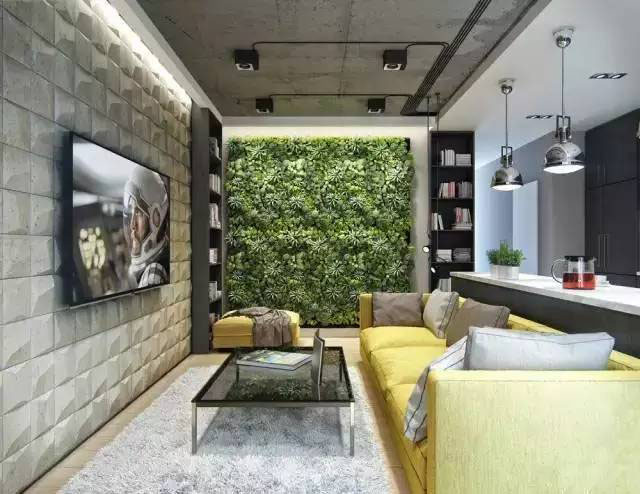 植物墙是用绿色植物编植成的墙体,它既有分隔内外空间的功能,又有葱茏的色彩,给空间带来舒适的美感。