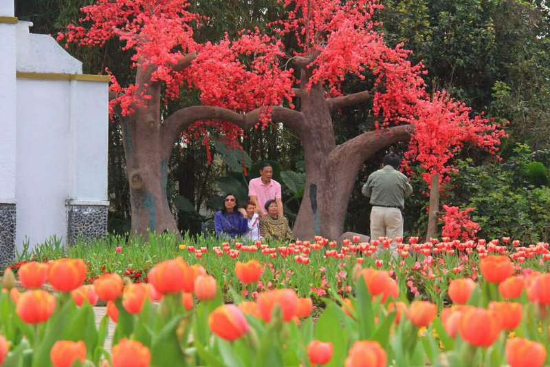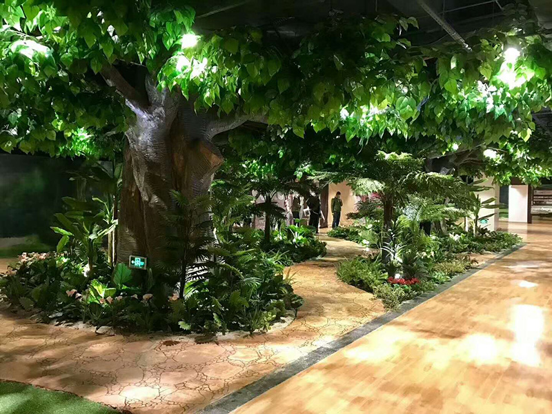 仿真树布局要合理,疏朗有致,单群结合。园林植物配置就有孤植、列植、片植、群植、混植多种方式。这样不仅欣赏孤植树的风姿,也可欣赏到群植树的华美。要注意不同园林植物形态和色彩的合理搭配。
