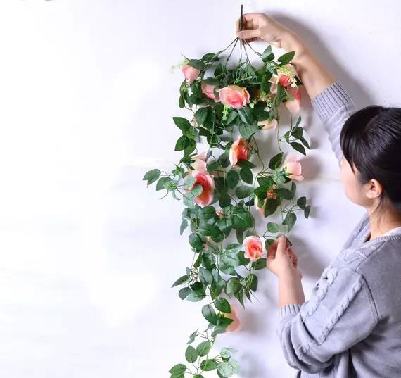 玫瑰花象征着炙热的爱情,新房的装饰怎么能离得开它的存在呢。玫瑰花的吊篮,在绿色的茂叶的衬托下,相得益彰。挂在墙上不仅是视觉的享受,也让卧室变成爱的花园。
